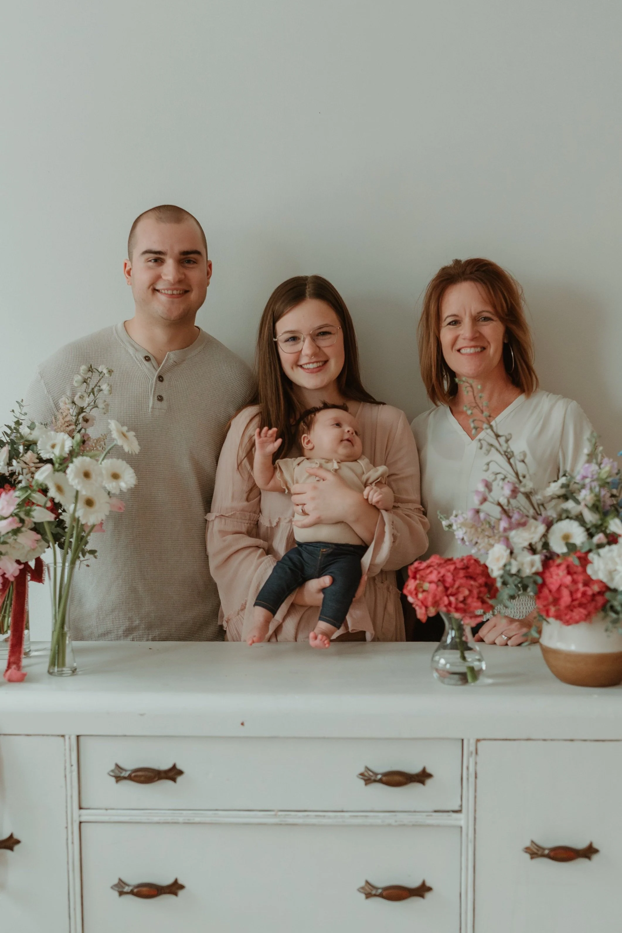Hi! I'm Macy, the main voice behind Barefoot Florals, and that’s my sweet little family and momma - they help me run this show! I've always loved being creative. Growing up I found myself playing instruments, singing, and crafting. I found ways to be creative whenever I could. My dad and I spent most weekends outdoors, hunting, fishing, and just being in nature together. When I created my own corsage for my high school dance, I realized that floral design combined my love for nature with my creative spirit, and I dreamed of starting a floral business. With my mom naturally by my side as my biggest supporter, our mother-daughter hobby quickly materialized into a full fledged family business in 2022.